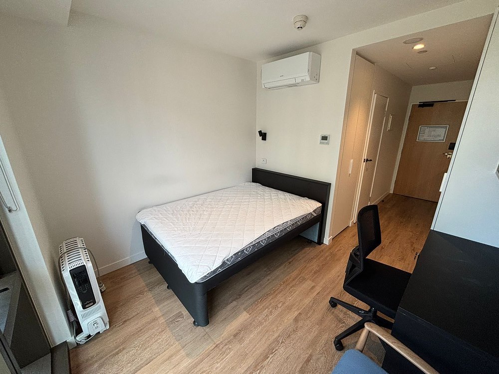 Studio apartment with everything supplied - fridge, microwave, air conditioner/heater, double bed with mattress, desk, plenty of storage. Utilities are included in rent - wifi, water, electricity!! Private kitchenette and bathroom. Student events to engage in with a lovely sense of community. 5 minute walk to Parkville campus and 15 minute walk to Melbourne Central. Message me for more photos and more information, happy to help!